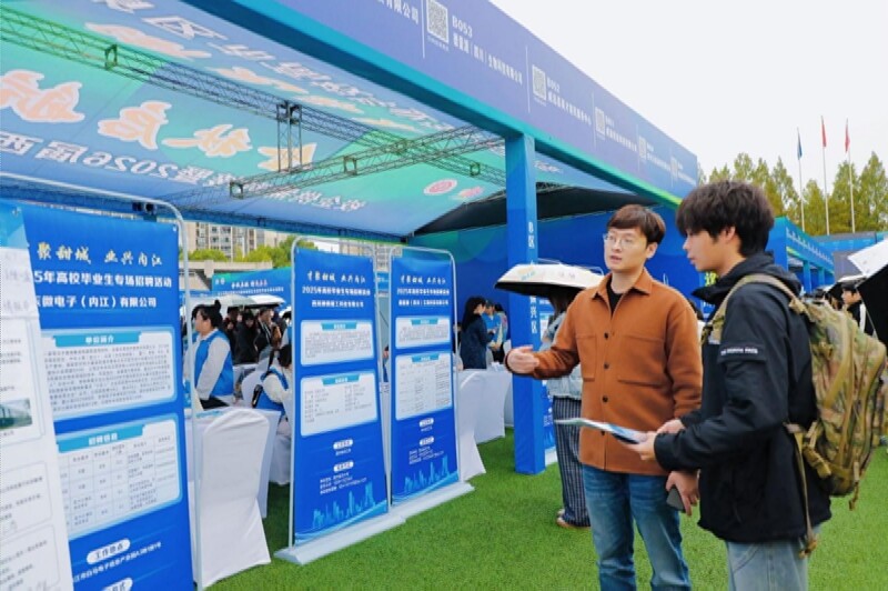 东微电子(内江)分公司是一家专注于高端集成电路制造用材料、设备及零部件服务的企业,专精特新“小巨人”企业。“这次招聘会提供信息专员、市场BD、技术员、讲解员等4个岗位,需要20多名专业技术人才,薪资在3500元到10000元。”该公司总经理陈宇轩介绍道,“公司还提供人才公寓,‘五险一金’等福利,优秀员工有机会到北京、上海、香港,甚至海外分公司外派学习的机会,将优秀的技术带回内江,发展内江。”