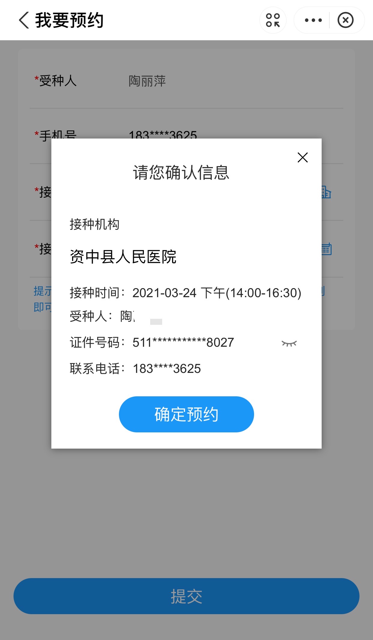 第三步:如实填写姓名、联系方式,选择接种机构和接种时间
