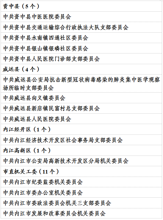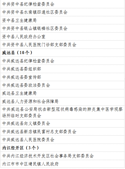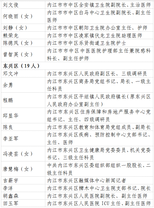 今天,内江市抗击新冠肺炎疫情市级表彰工作领导小组办公室公布拟定评选表彰内江市抗击新冠肺炎疫情市级表彰先进个人和集体名单,拟定名单详情如下: