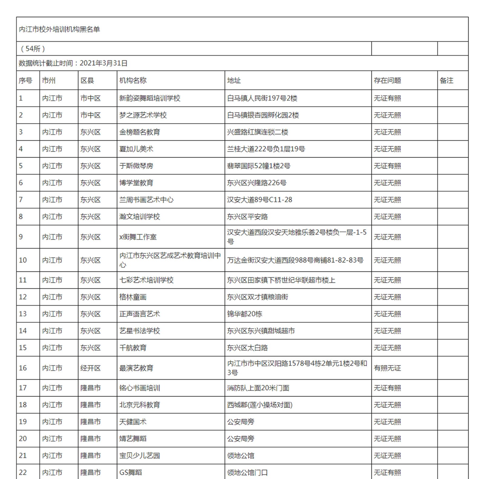 最新!内江2021年3月校外培训机构黑白名单公布!
