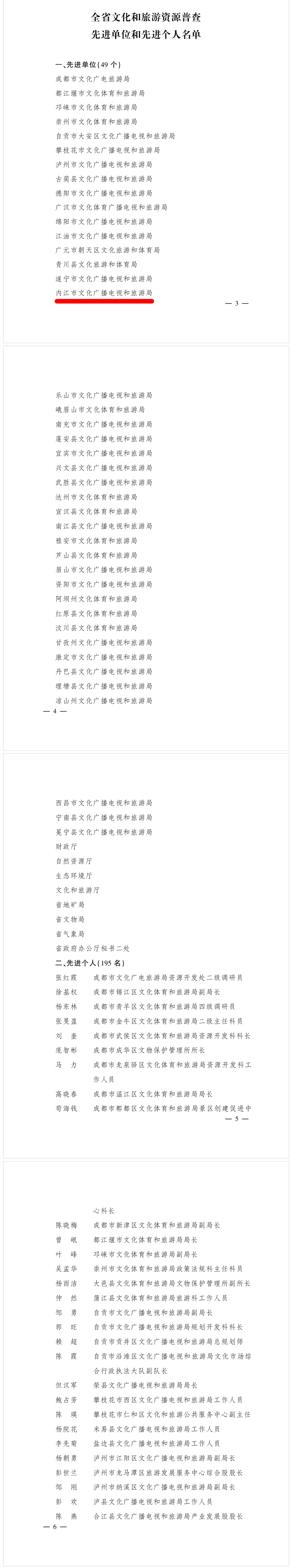 四川省人民政府办公厅近日公布关于表扬全省文化和旅游资源普查先进单位和先进个人的通报,对49个先进单位、195名先进个人予以通报表扬。