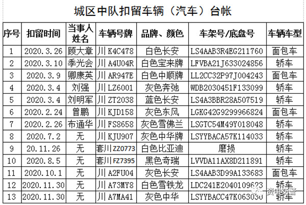 限时3个月!资中交警发布集中处理查扣车辆公告