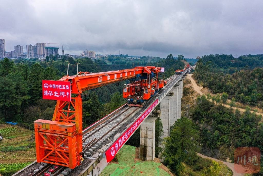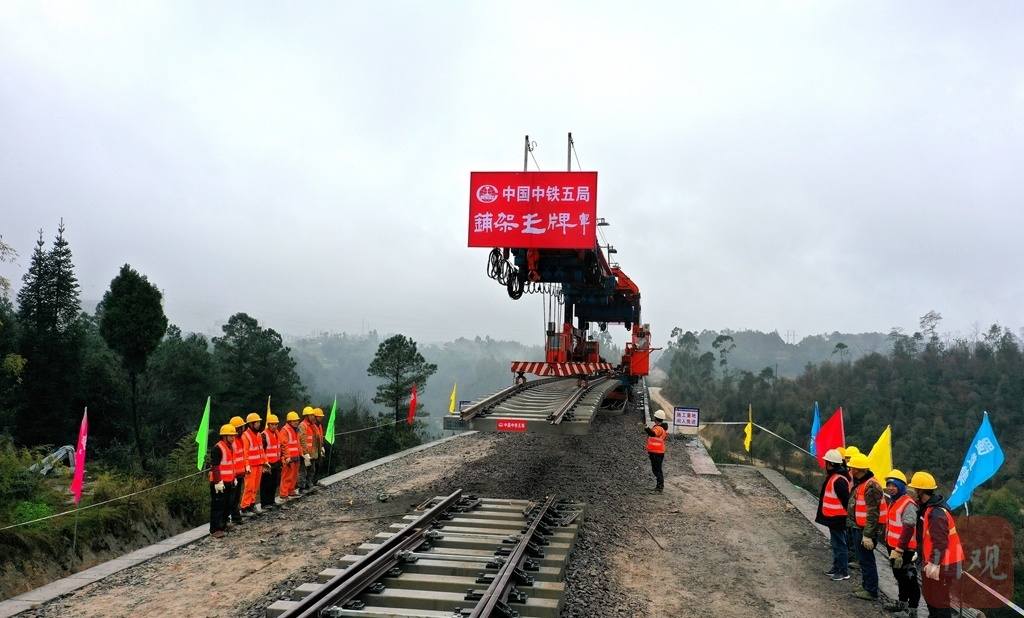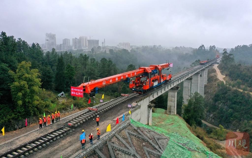 时间:2021-12-28 15:17:29 来源:川观新闻12月28日,随着施工人员将最后一组轨排铺设在内江市威远县连界镇三岔河特大桥桥头路基上,由中铁五局负责施工的连界至乐山铁路正线轨道贯通。这标志着连乐铁路建设取得重大阶段性进展,为开通运营通打下坚实的基础。