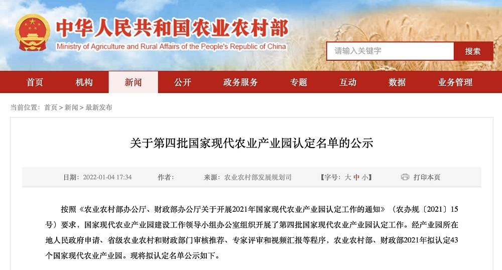 据悉,本次入选的43家国家现代农业产业园,经产业园所在地人民政府申请、省级农业农村和财政部门审核推荐、专家评审和视频汇报等程序认定。