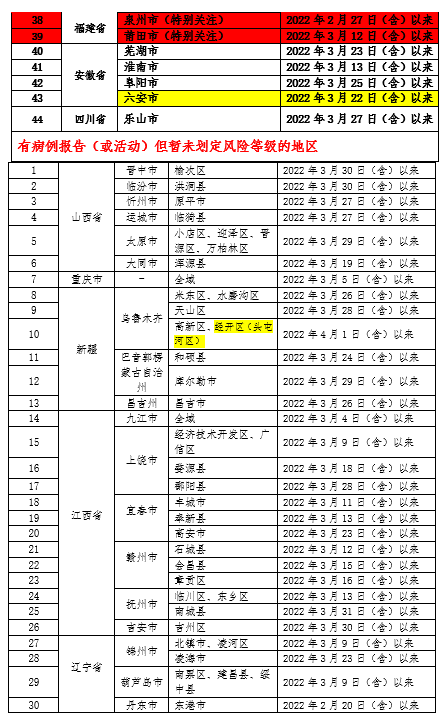 近期,国内疫情点多、面广、频发,疫情防控面临复杂性、艰巨性、反复性的严峻形势。近日,我省成都、乐山、遂宁、德阳等地相继在外省返川人员中发现病例。公众要密切关注成都市、上海市、吉林省、辽宁省、天津市、福建省泉州市、莆田市,山东省滨州市、安徽省淮南市、江苏省常州市、苏州市、徐州市,陕西省安康市、浙江省嘉兴市等地疫情情况。非必要不前往中高风险地区。同时,及时关注我省官方发布的相关信息。