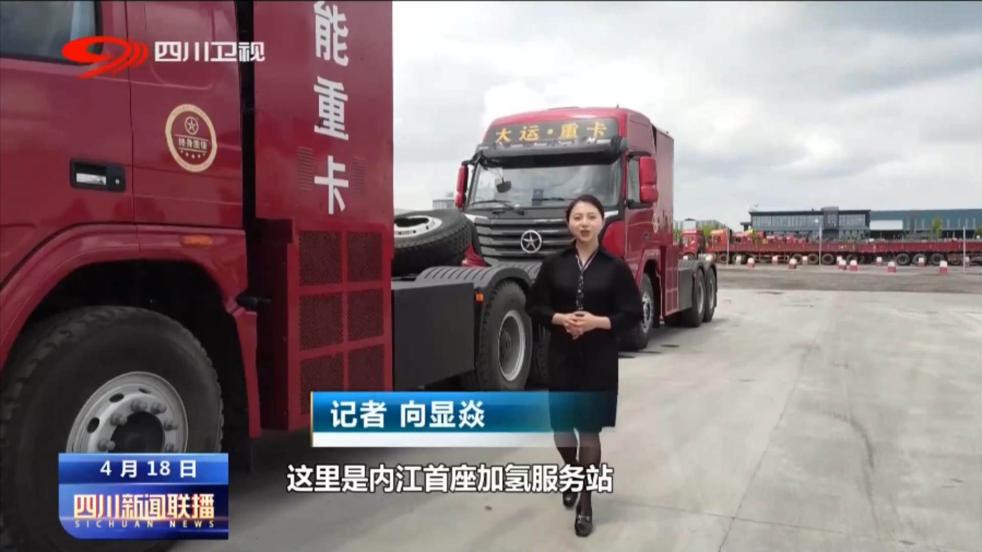 记者向显焱:这里是内江首座加氢服务站,未来在这里,氢气日加注能力设计为500公斤,可以满足超过50辆氢能源电池车辆加注需求,像这样一辆49吨的氢能源重卡,只需要20到30分钟,就能加满氢能源。