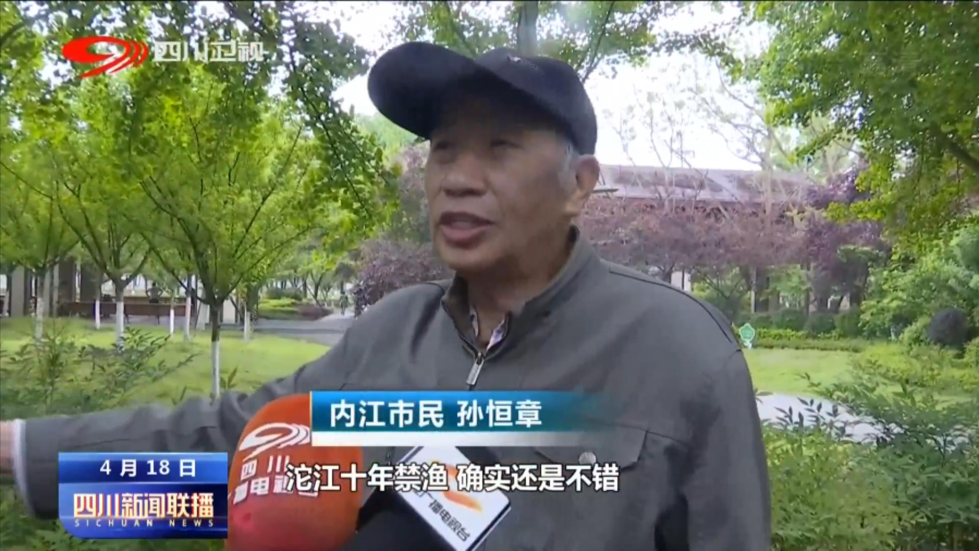 内江市民孙恒章:沱江十年禁渔,确实还是不错,绿化城市建设都好,空气又好。
