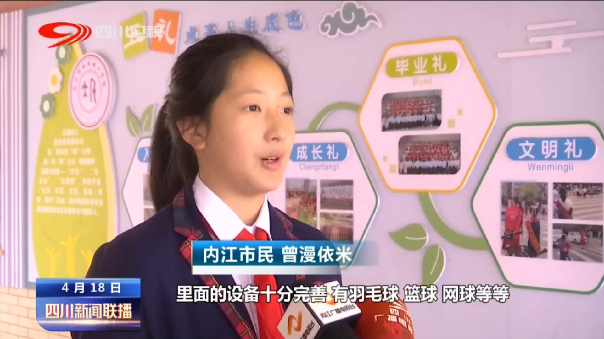 内江市民曾漫依米:在去年内江市体育中心开放了,里面的设备十分完善,有羽毛球、篮球、网球等等,我和我同学们都非常喜欢去那儿。