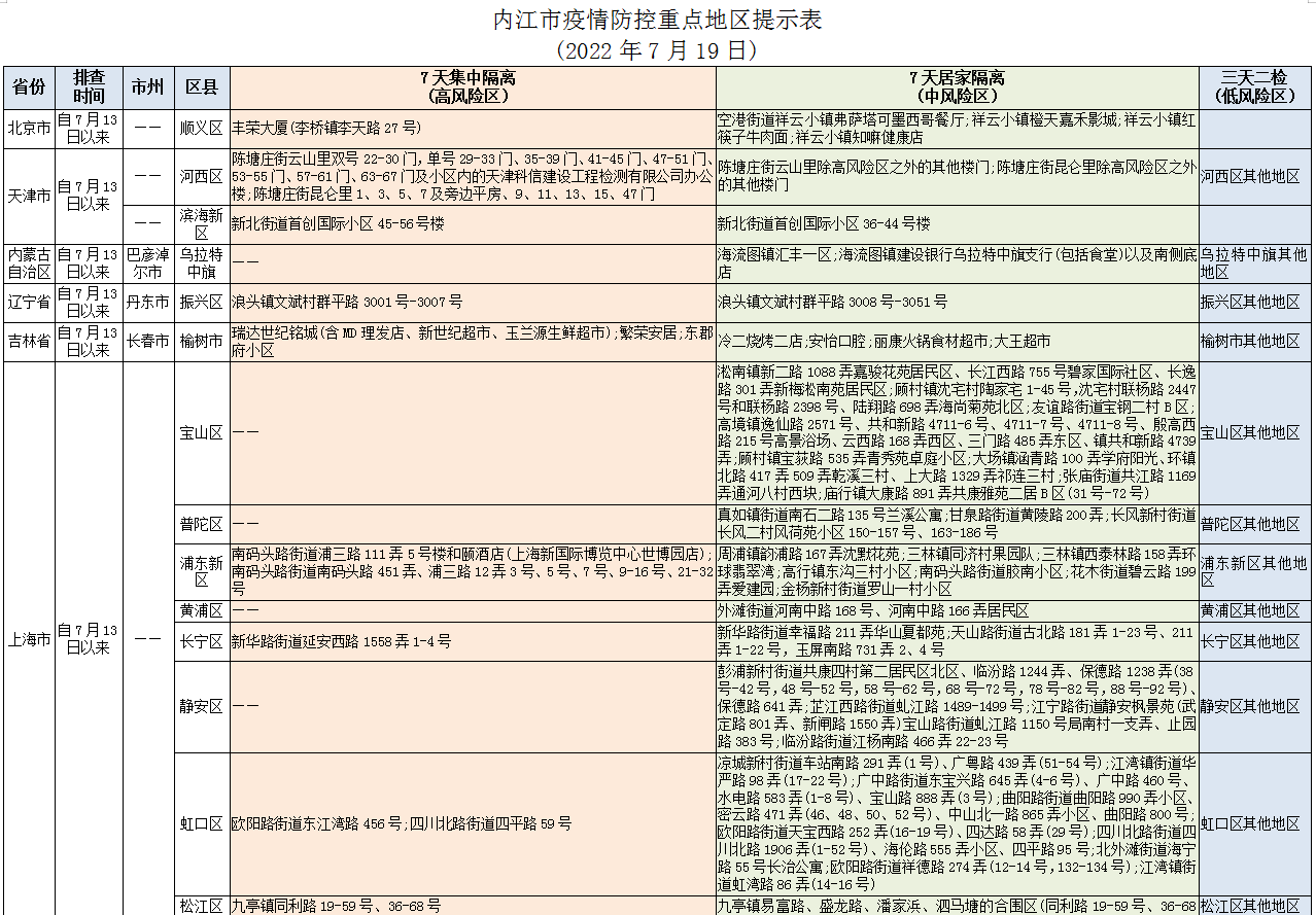 内江市疫情防控重点地区提示表(2022年7月19日)