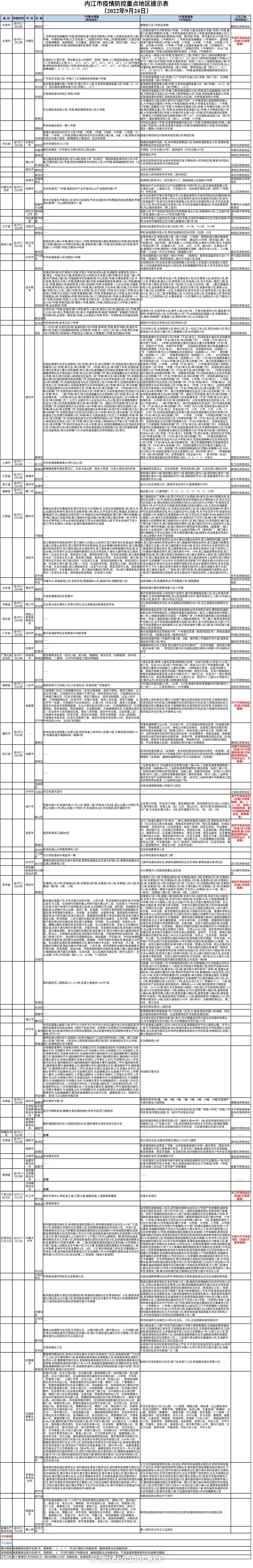 内江市疫情防控重点地区提示表(2022年9月24日)