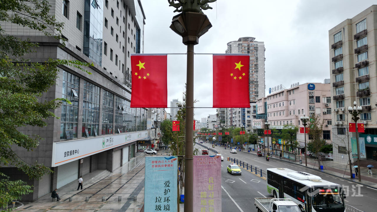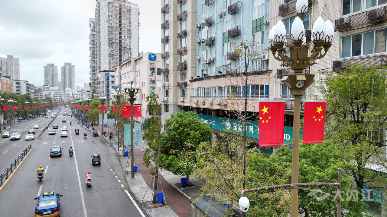 在内江城区,一面面鲜艳的五星红旗把道路装扮得分外喜庆,祖国的昌盛、城市的发展让市民幸福感满满,也让大家对未来充满了期待。