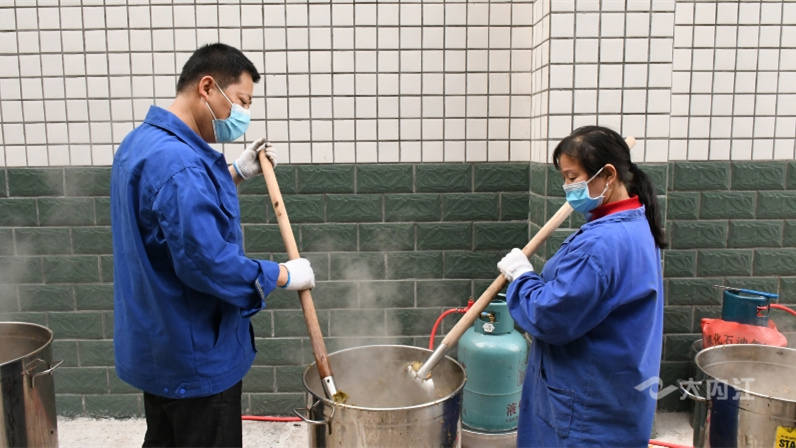 11月21日,在位于东兴区田家镇的四川涪丰药业有限公司厂区里,十多口大锅里不断冒着热气,空气中弥漫着浓浓的中药味,十余名员工们正忙着熬制中药“大锅汤”,这些药汤会被送到高风险地区、重点人群和一线防控人员手中。