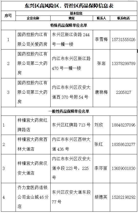 电话订购!东兴区公布一批高风险区域、管控区域药品保供单位名单