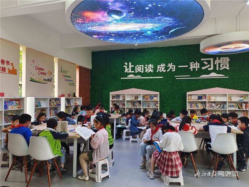 内江十小书吧位于内江十小校内,占地面积300多平方米,分为藏书室、阅读厅、书塔阅读角、党员阅读室、班级阅读角,现有藏书4万余册,图书涵盖社会科学、哲学、科普、人文、历史、地理、家庭教育、文学、艺术等门类。此外还特地设置了“党史学习专栏”供师生借阅。开展“读好书、做好人、传家风”诵读经典等阅读活动,引导青少年树立正确的人生观,做好接班人。
