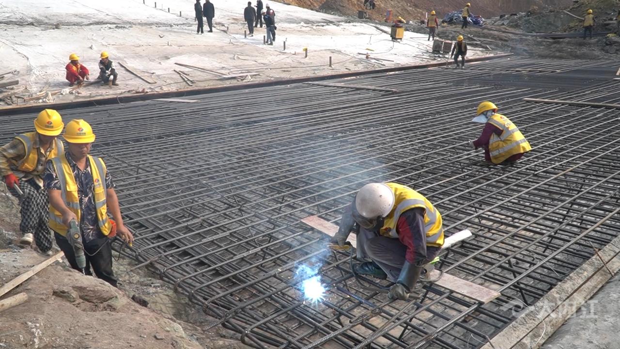 与此同时,在威远县大石包水库项目建设现场,运输车、挖掘机在工地来回作业,140余名施工人员坚守岗位加紧施工。