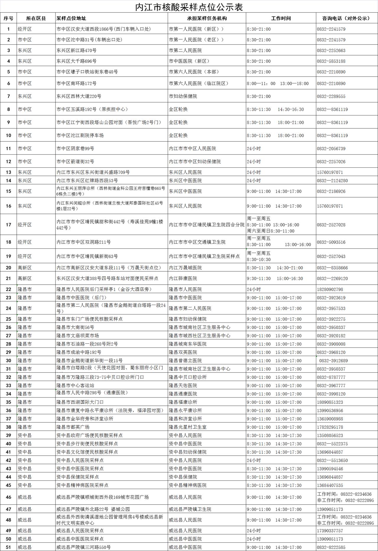 刚刚,内江更新各县(市、区)核酸采样点位信息,详情如下: