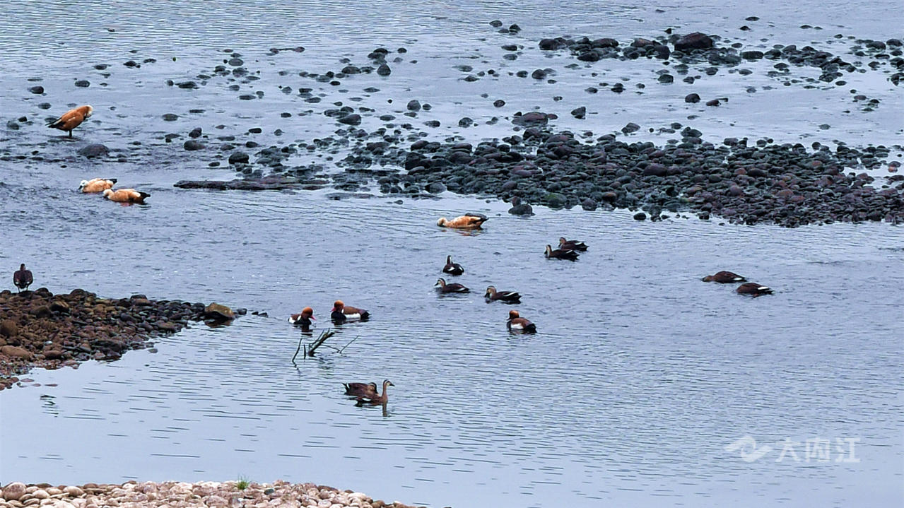 时间:2022-12-13 16:34:56 来源:内江广播电视台近日,位于内江市资中县城区段的沱江河畔迎来了观鸟黄金期,赤麻鸭、赤嘴潜鸭、鸬鹚等上百只野鸭汇集于此觅食、嬉戏。它们时而在空中盘旋,时而掠过水面,形成一道人与自然和谐共生的独特风景。