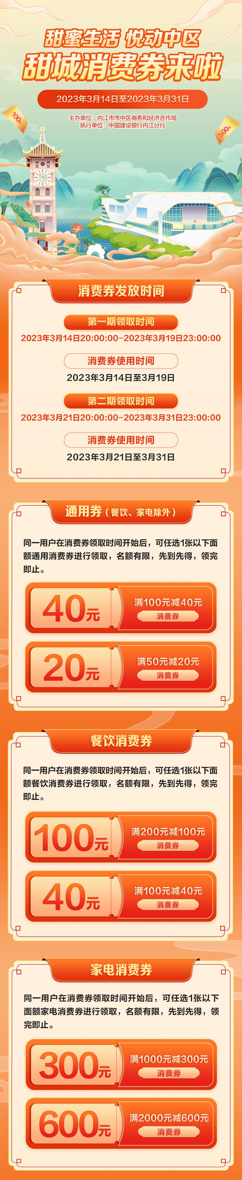 时间:2023-03-10 10:14:59 来源:内江广播电视台内江市市中区甜城消费券来啦!