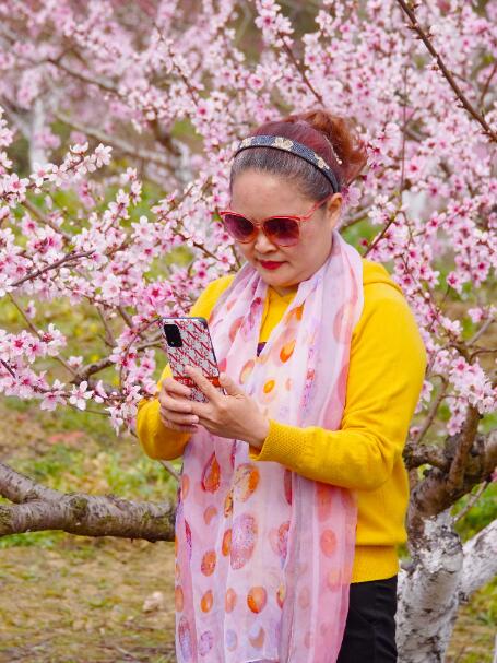 正在与桃花合影的游客周能芳告诉记者,“这里的桃花,每年都开得很艳丽,拍照很漂亮,我和朋友们来踏青、赏花,看到这些鲜艳的桃花,心情非常好。”