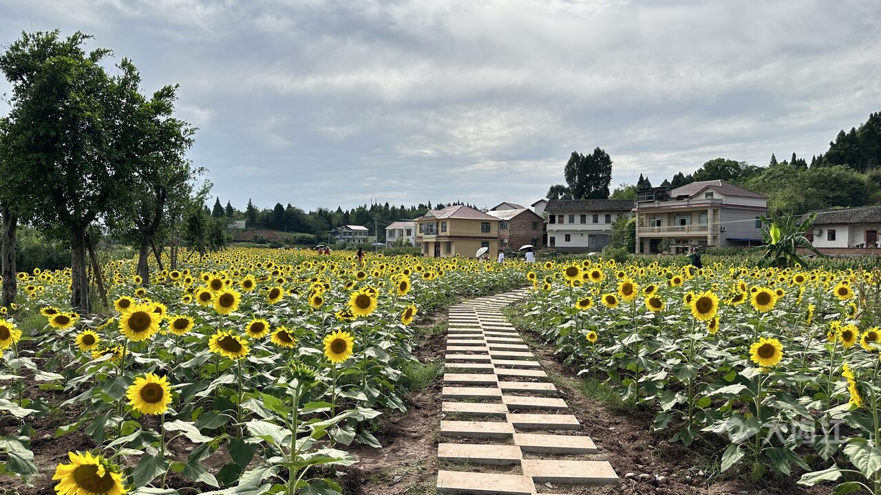 曾经,这里是杂乱的撂荒地,内江高新区高桥街道围绕农村面貌改善、农旅融合等重点项目,积极提升乡村面貌,打造特色景观,种下一片“小太阳”。如今,吸引了不少游客前来赏花、拍照、游玩。不仅美化了田园风光,还带动了乡村旅游的发展。