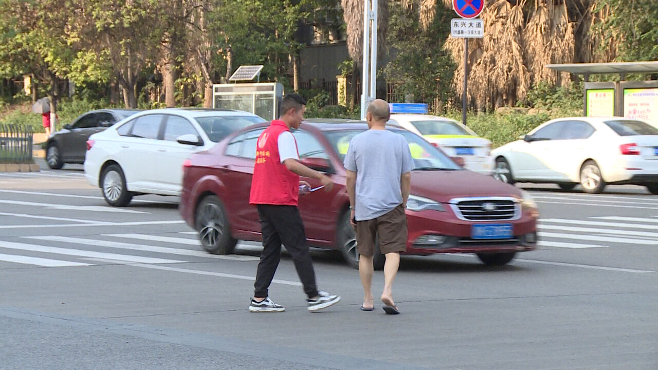 7月10日晚高峰时间,记者在大千路与北环路交叉路口看到,内江市体育中心的志愿者们正站在斑马线前引导交通,护航市民安全出行。内江市体育中心志愿者周孝平告诉记者,文明出行是一道亮丽的风景线,它让我们的城市看起来更加和谐、更加美丽,同时保障着人民群众的生命安全,他希望通过文明劝导,让甜城更加美丽和谐。