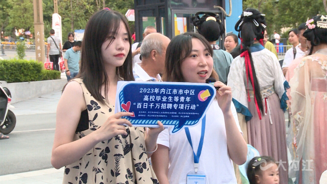 时间:2023-07-11 11:03:12 来源:内江广播电视台7月10日晚,市中区高校毕业生“百日千万招聘专项行动”在吾悦广场举行,活动采取直播带岗、摆放展板、提供政策咨询等方式,通过夜市的“烟火气”,为就业服务“聚人气”,让政策宣传“接地气”,实现夜间经济与人才招聘“双向奔赴”。