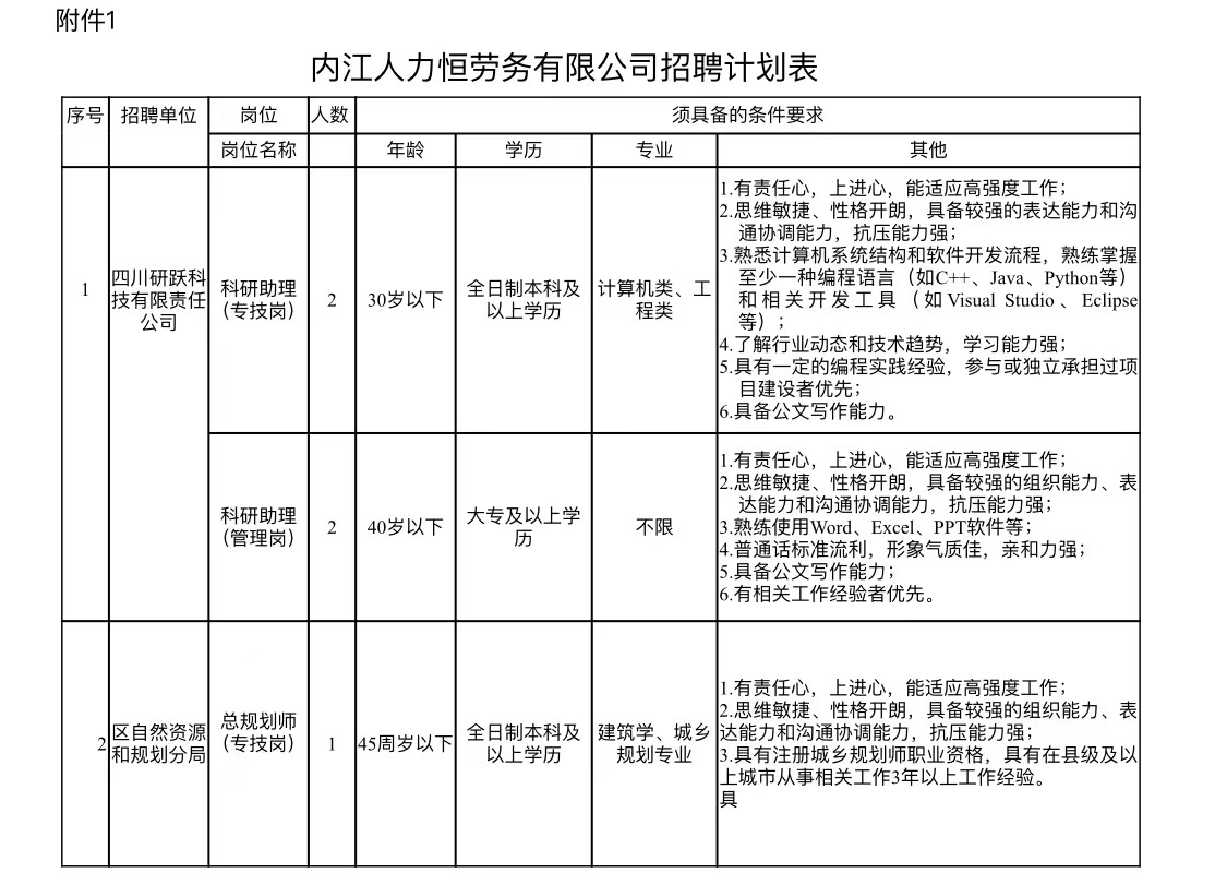 附件:1.内江人力恒劳务有限公司招聘计划表 (1).doc