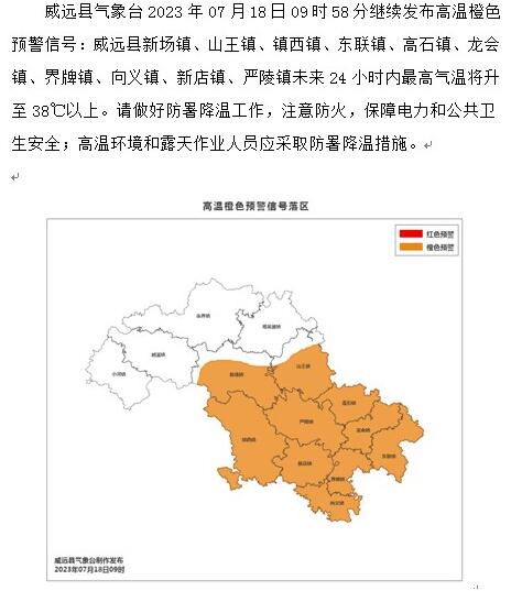 7月18日上午,内江多地接连发布高温橙色预警信号,详情如下:
