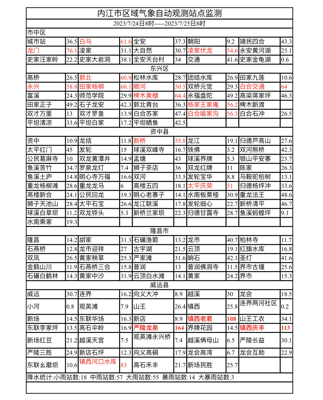 时间:2023-07-25 08:55:52 来源:内江市气象台7月25日,内江市气象台发布降水实况及未来天气趋势预报,详情如下。
