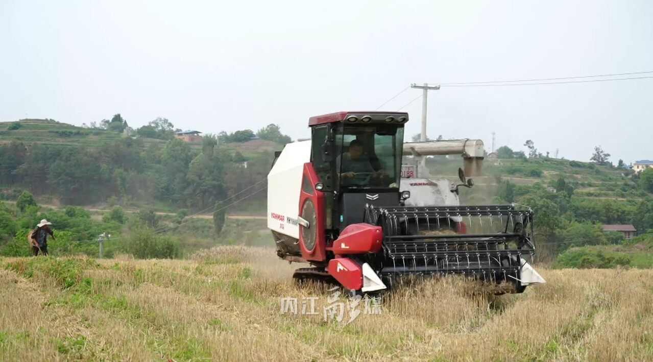 资中县公民镇盘龙寺村村民桂连舟介绍:“我们村外出人员比较多,土地由农事服务中心帮忙代种代收。从除草,播种,施肥到现在的收割,都由他们帮我们机械化操作。我们省事省心,非常开心。”