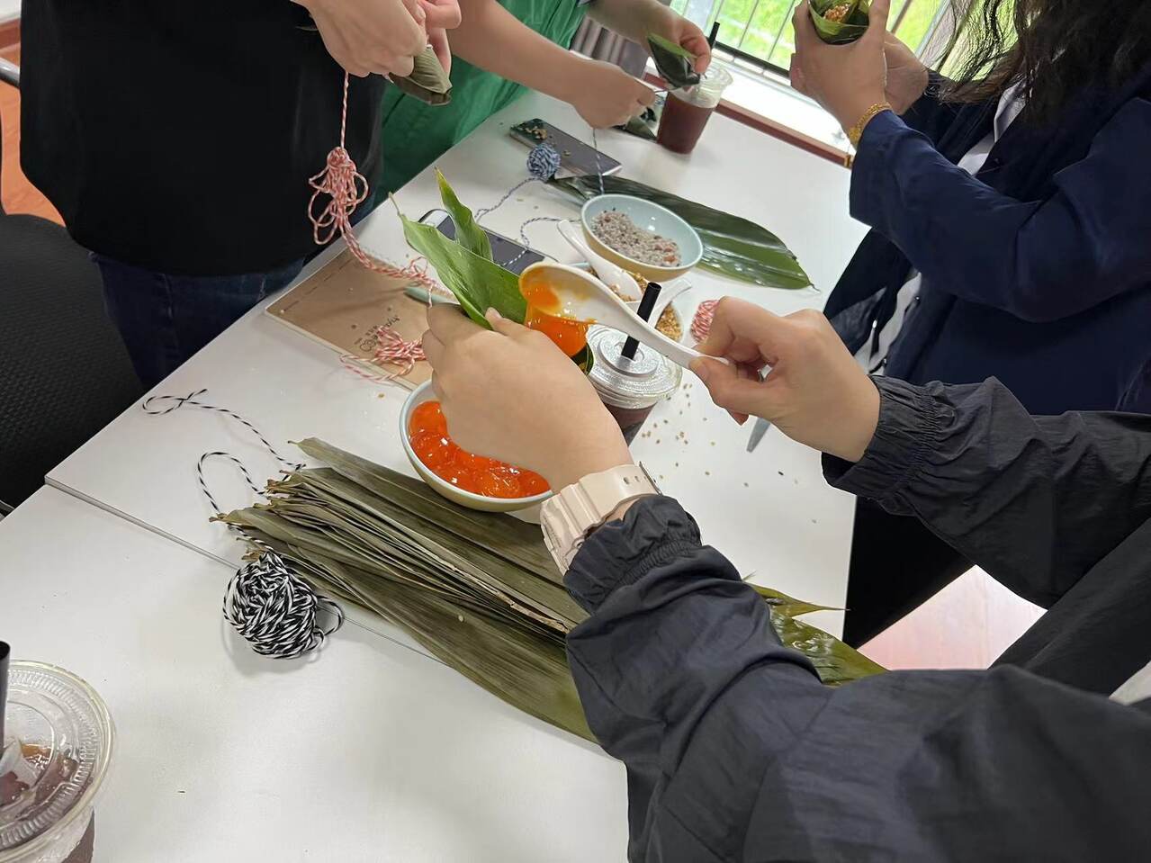 一年一端午、一岁一安康。在手工老师的简单教学后,趣味包粽子活动正式开始,捋粽叶、做漏斗、填糯米、压紧实、封口、扎捆。员工们相互学习、相互探讨,从陌生到熟悉、从匆忙到熟练,很快掌握了包粽子的技巧,不断精进手中粽子的造型,活动现场一片欢声笑语、其乐融融。