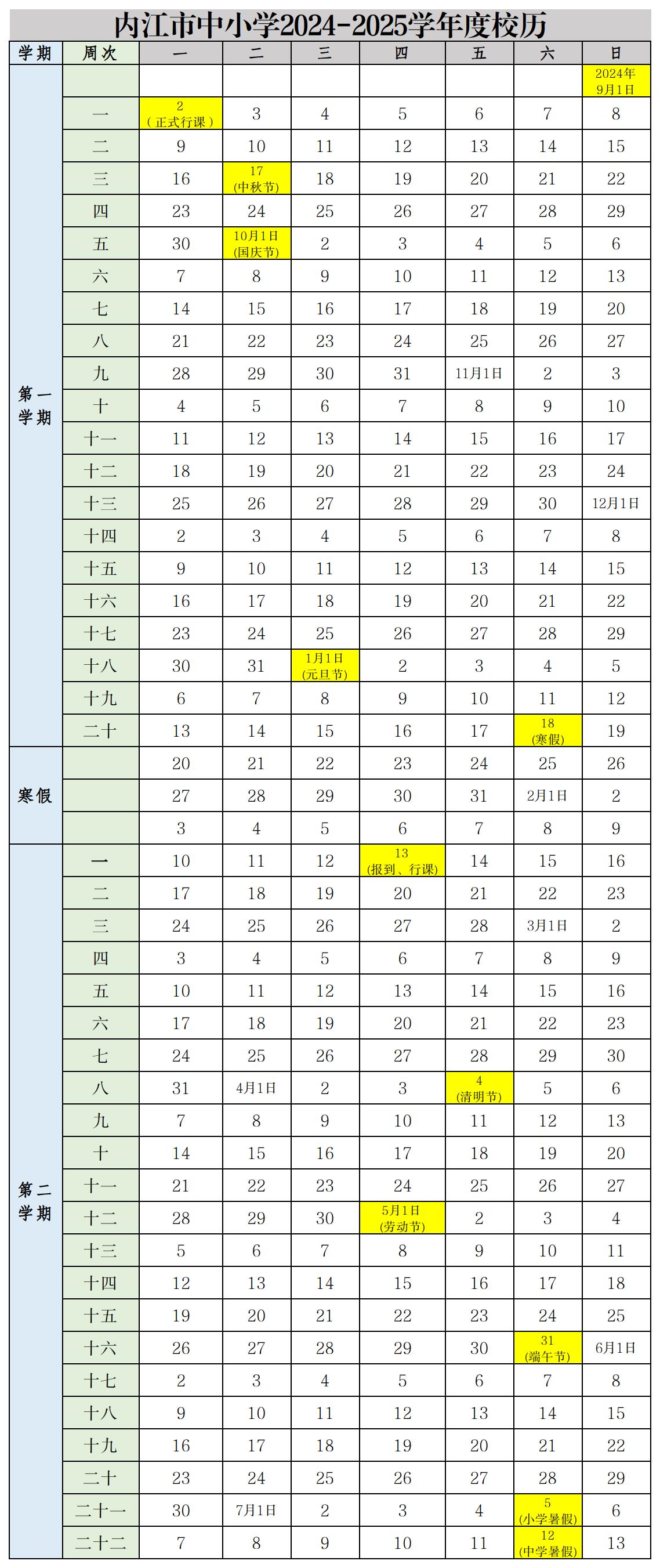 内江市中小学2024—2025学年度校历发布