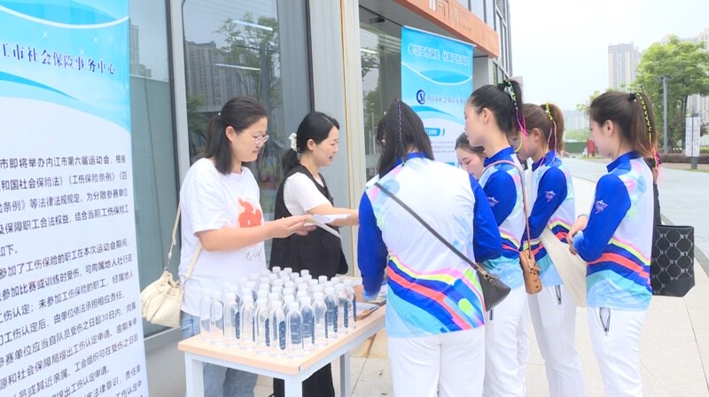根据《中华人民共和国社会保险法》、《工伤保险条例》、《四川省工伤保险条例》等法律法规规定,为分散参赛单位的工伤风险及保障职工合法权益,6月28日,市人社局、市社保中心、东兴区人社局的工作人员来到市第六届运动会广播体操比赛现场,开展工伤预防体育共建宣传。