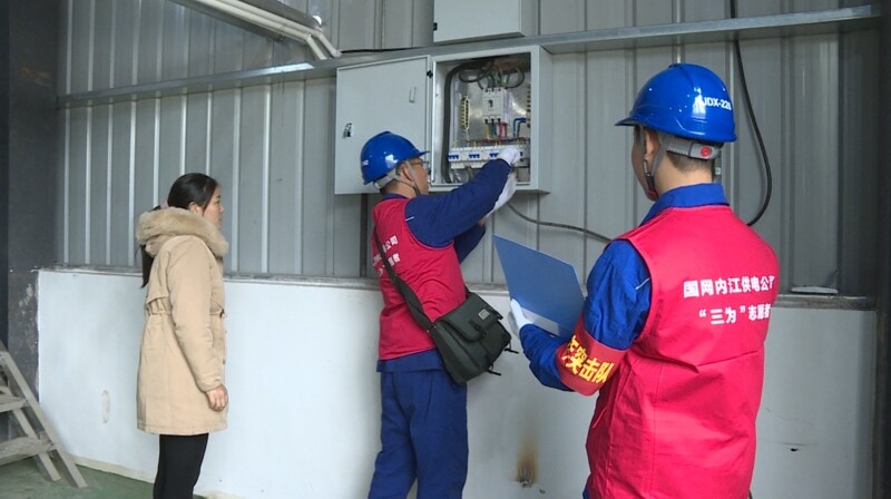 国网内江供电公司“三为”志愿者们检查企业用电设备