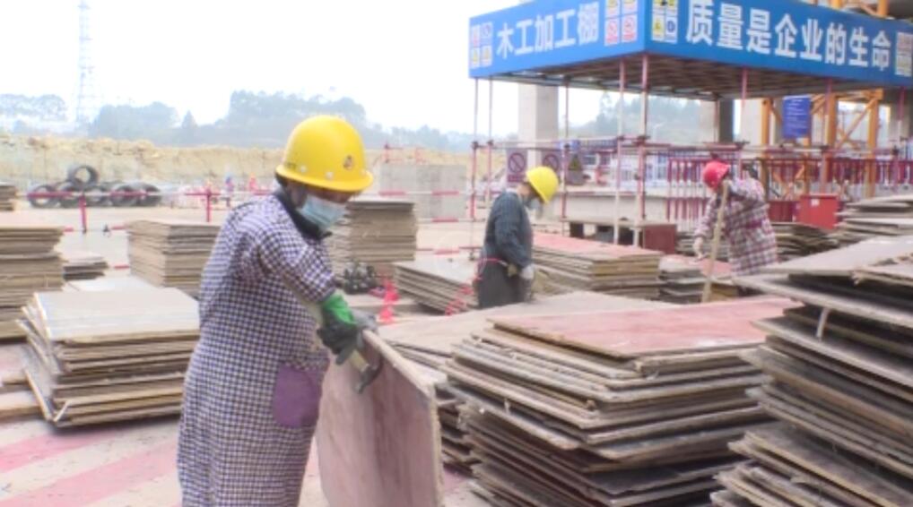 2月17日,记者在项目现场看到,塔吊林立,百余名工人分散在各个区域紧张作业,做钢筋、砌墙、搭架,现场一派忙而有序的施工场景。