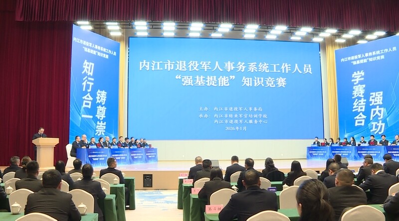 为进一步提高全系统干部职工综合素质,夯实退役军人工作基础,提升服务保障能力,推动退役军人服务保障工作高质量发展,1月8日下午,由市退役军人事务局主办的内江市退役军人事务系统工作人员“强基提能”知识竞赛在内江市委党校举行,市县两级共8支参赛队伍同台竞技。次活动以“学赛结合强内功 知行合一铸尊崇”为主题,旨在通过竞赛搭建学习交流平台,推动全市退役军人服务保障工作高质量发展。
