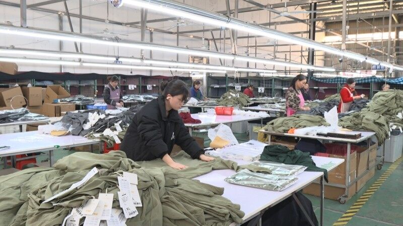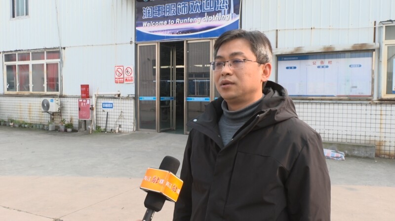 记者万丹丹说道:“这里是隆昌润丰服饰的生产车间里,在我身后,工人们正在加紧赶制价值一百万美元的订单,这批订单包含优衣库、波司登,耐克等品牌的童装及成人服饰,主要销往欧美地区。”