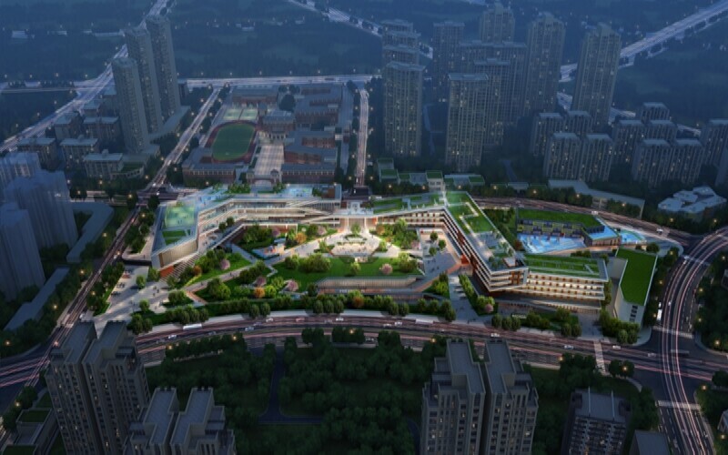 记者走进项目现场,通过航拍镜头俯瞰,一个“公园式”的大型生态综合商业体跃然眼前。商业建筑与立体绿化相映成趣,屋顶运动场与地面海绵绿地层层递进,形成“人在园中逛、商在景中融”的和美画卷。