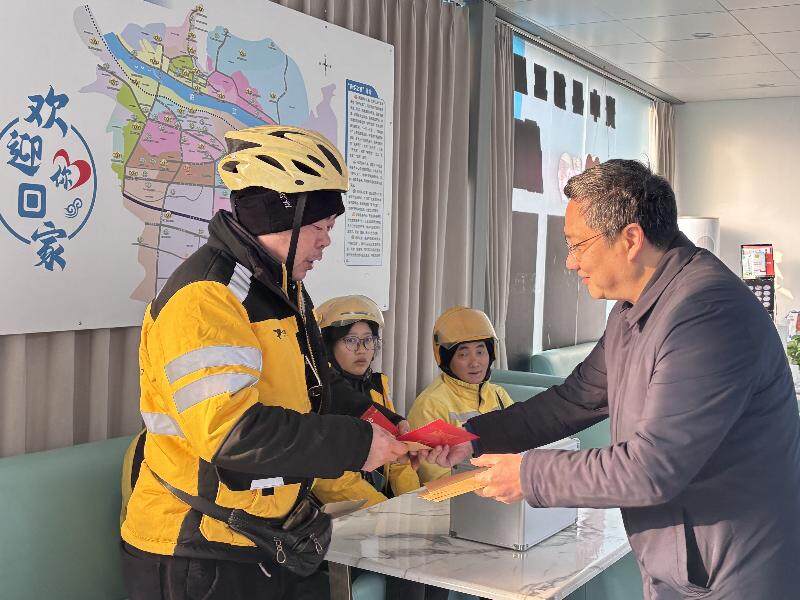 活动中,市市场监管局副局长、市外卖配送行业党委副书记陈勇与网约配送员们亲切交谈,细致询问大家日常配送安排、收入状况等,并特别关切地了解困难党员、职工家庭状况与实际负担,耐心倾听他们的心声与需求,给予鼓励和支持。陈勇表示,党组织始终是广大网约配送员最坚实的依靠,市外卖配送行业党委将持续关注、尽力帮扶暂时遇到困难的党员、职工,协调各方资源,切实为大家排忧解难。随后,他再三叮嘱大家,在努力工作的同时,一定要时刻注意交通安全,做好冬季防寒保暖措施。最后,他向大家致以诚挚的新春祝福,祝愿大家在新的一年里身体健康、阖家幸福。