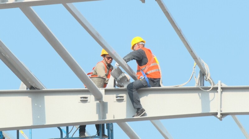 2月25日,在新型锂离子电池西南生产基地项目的建设现场,工人们正在进行厂房的屋面檩条安装,掀起一股大干快上的建设热潮。以实干开局、以冲刺起步,全力推动项目提速增效。