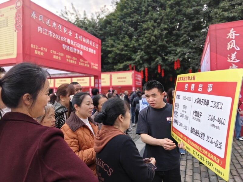 达成就业意向2385人次!内江市2026年春风行动暨就业援助季专场招聘会举行