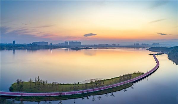 成都天府新区兴隆湖晨光。(成都市委网信办供图)