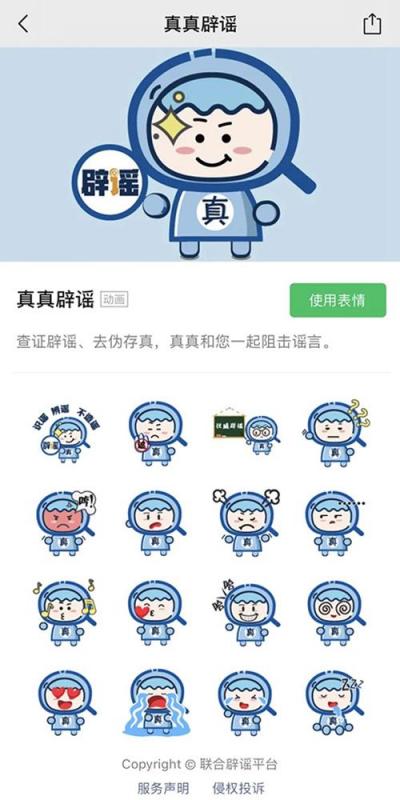我为自己设计了一个可爱的卡通形象——真真,在微信表情商店上线了16款表情,让辟谣“动起来”,在指尖传递正能量。同时,我还推出了“真真说”系列辟谣短视频,用生动可爱的方式将辟谣知识传递给大家,寓教于乐。