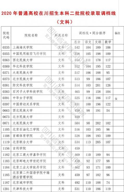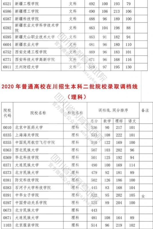重磅!2020年普通高校在川招生本科二批院校录取调档线出炉!