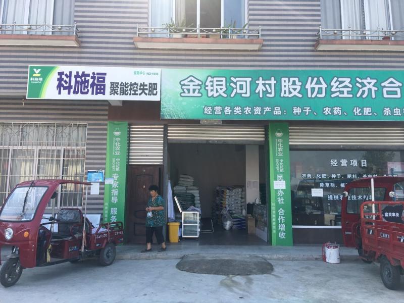 8月27日中午,金银河村村委会对面的“农资超市”有点热闹,三四名村民骑着三轮车来买肥料。太阳大天气热,村民们并没有急着离开,停在合作社聊天歇凉。对于他们来说,这个合作社也是自己的产业,因为他们是这里的股东。