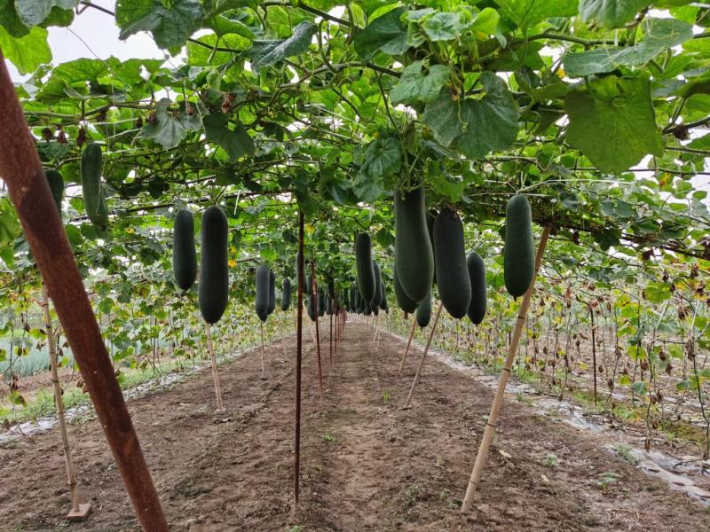 走进金银河村,地里随处可见大片的冬瓜、苦瓜、海椒等蔬菜。