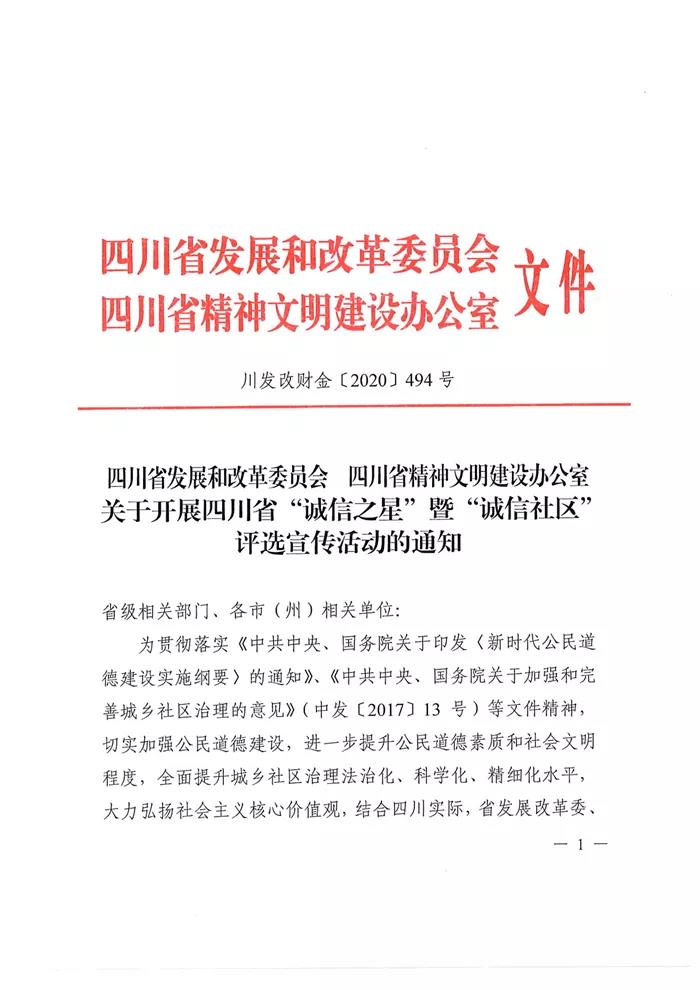 为贯彻落实中共中央、国务院印发的《新时代公民道德建设实施纲要》《关于加强和完善城乡社区治理的意见》文件精神,大力弘扬社会主义核心价值观,进一步提升公民道德素质和社会文明程度,全面提升城乡社区治理能力水平,8月28日,由省发展和改革委员会、省精神文明建设办公室主办的四川省“诚信之星”暨“诚信社区”评选宣传活动正式启动。此次活动得到了省委政法委、省高级人民法院、省人民检察院、省经济和信息化厅、省公安厅、省民政厅、省司法厅、省生态环境厅、省住房城乡建设厅、省交通运输厅、省文化和旅游厅、人行成都分行、团省委、省工商联、省民营经济办、省大数据中心等16家单位的大力支持,四川新闻网传媒集团对活动进行全程宣传推广。