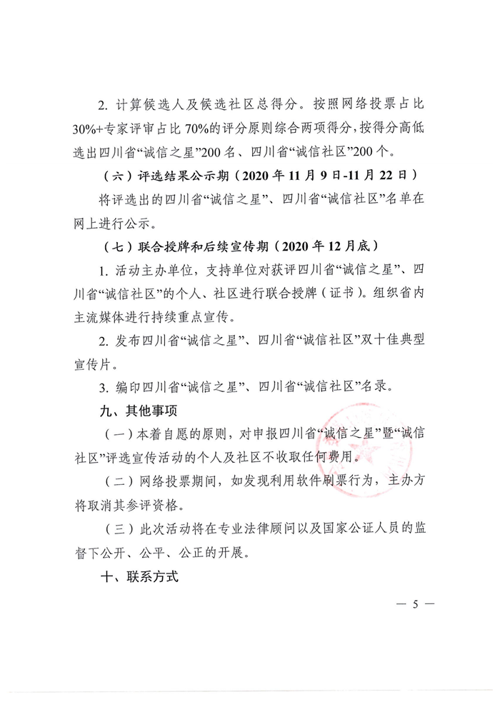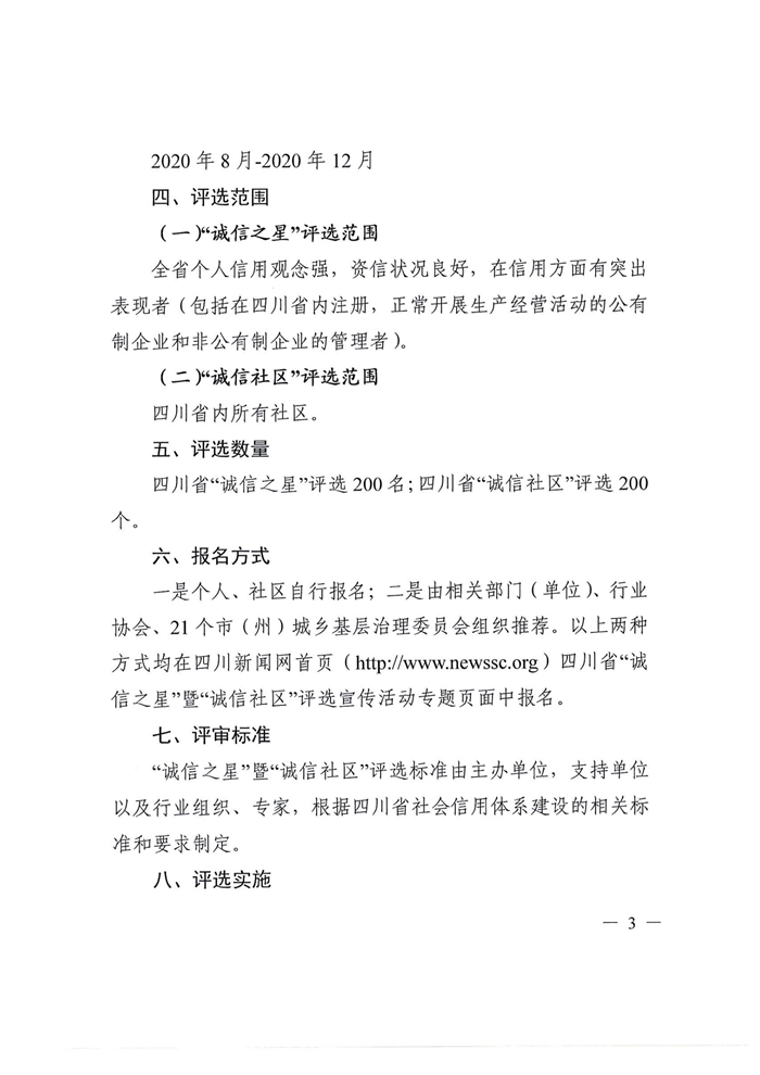 关于开展四川省“诚信之星”暨“诚信社区“评选宣传活动的通知