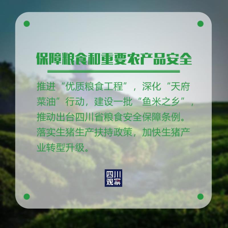 (九)稳步提高粮食产量。各级党委、政府要切实扛起粮食安全政治责任,实行粮食安全党政同责。落实藏粮于地、藏粮于技战略,提升粮食主产县综合生产能力,划定非主产县粮食面积、产量和自给率底线,分类压实粮食生产责任,确保粮食播种面积和产量只增不减。健全产粮大县支持政策体系。选择部分粮食主产县,支持其整县推进农业现代化示范区建设。推进“优质粮食工程”,深化“天府菜油”行动,建设一批“鱼米之乡”。开展厉行节约制止餐饮浪费系列行动。推动出台四川省粮食安全保障条例。严格开展粮食安全责任制考核。未能完成粮食生产目标任务的县(市、区)不得参加涉农工作评优。按程序开展四川省“稻香杯”暨农业丰收奖评选。