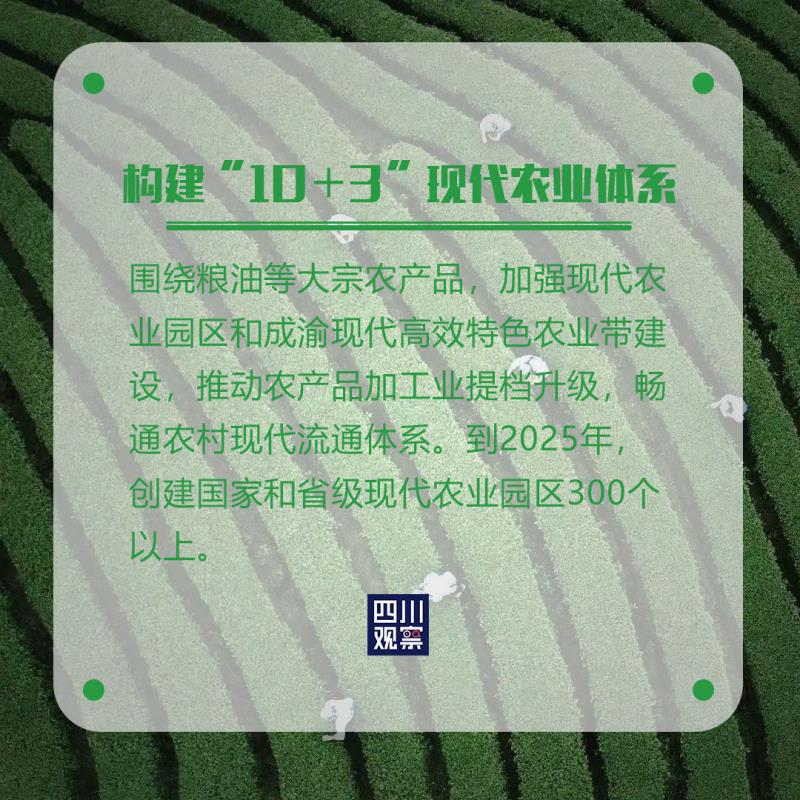 (十六)推进现代农业产业集聚发展。围绕粮油等大宗农产品,加强现代农业园区建设,健全管理机制,实行“园长制”。研究制定四川省现代农业园区管理条例。到2025年,创建国家和省级现代农业园区300个以上、市县级现代农业园区3000个以上。实施现代农业产业提升工程,建设农业产业强镇、优势特色产业集群、特色农产品优势区。
